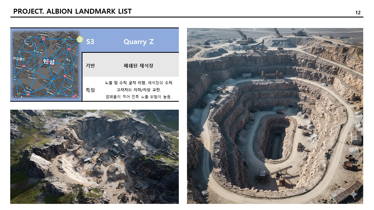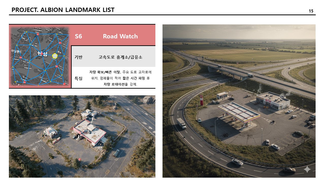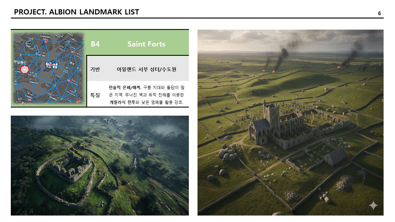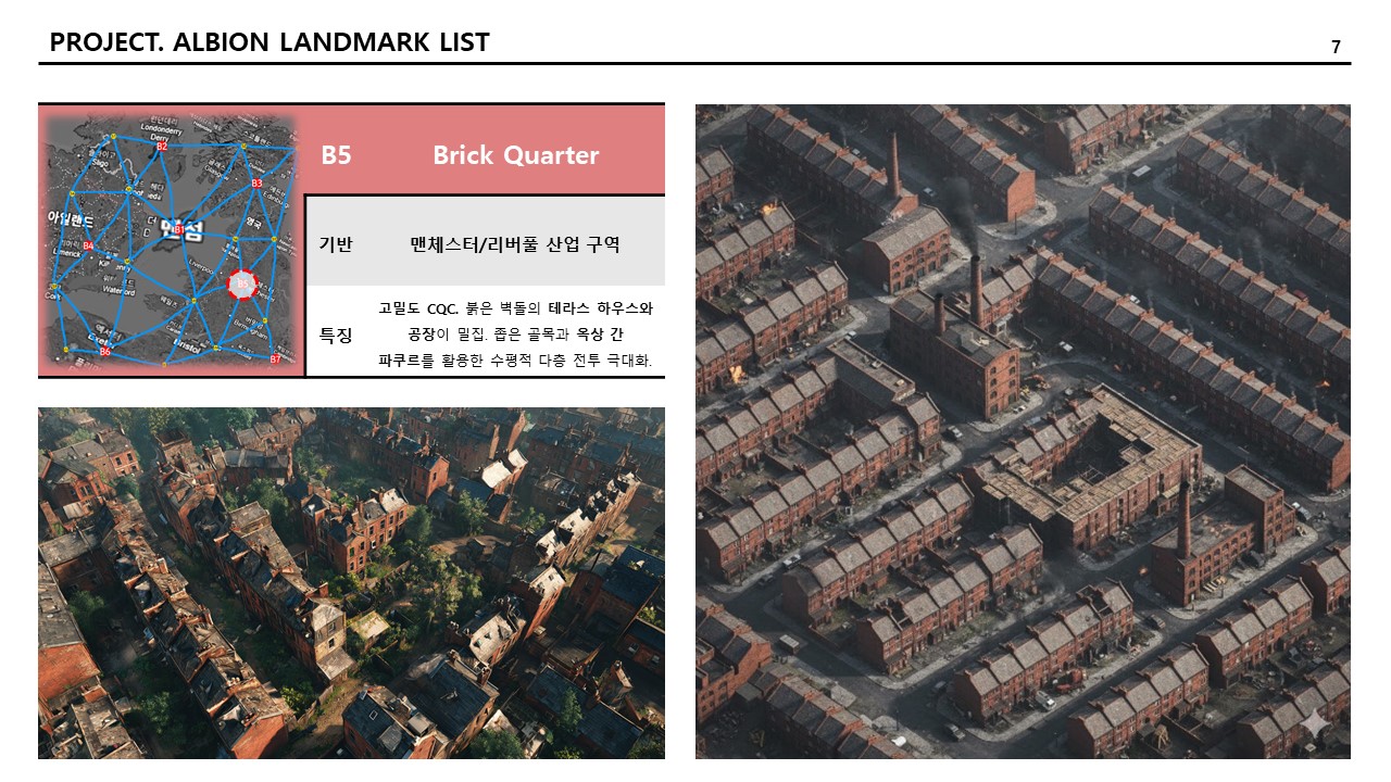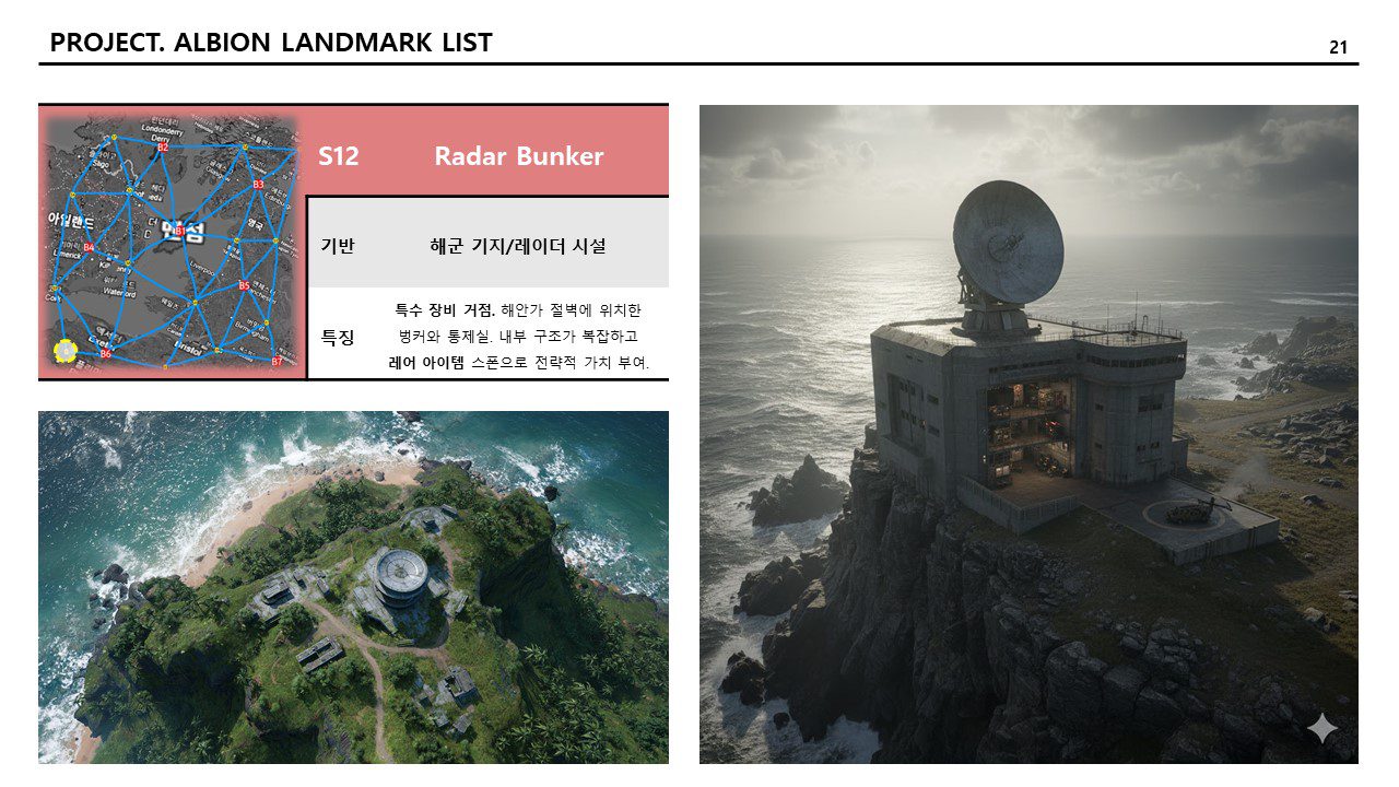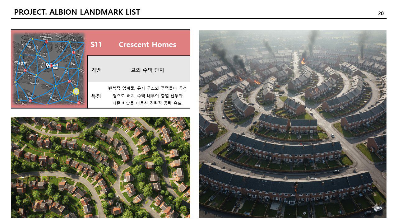 각 21가지의 도시에 대하여 1페이지씩 할당하여 PowerPoint를 활용해 정리하고, 이 게시물에 이미지 형식으로 첨부하여 기록한다. 당장은 기획 및 AI 이미지로 초안을 다듬고, 현실 소스를 더욱 조사한 다음에 Unreal Engine 5를 활용한 레벨 디자인의 본격적인 작업을 시작하고자 한다.