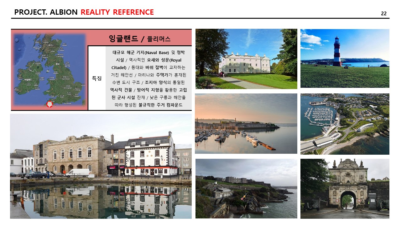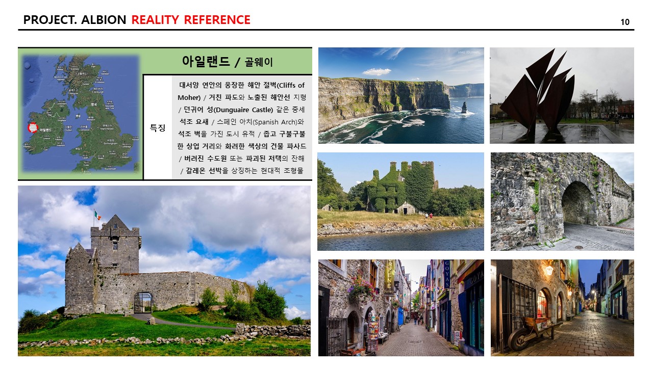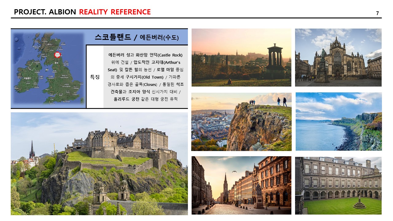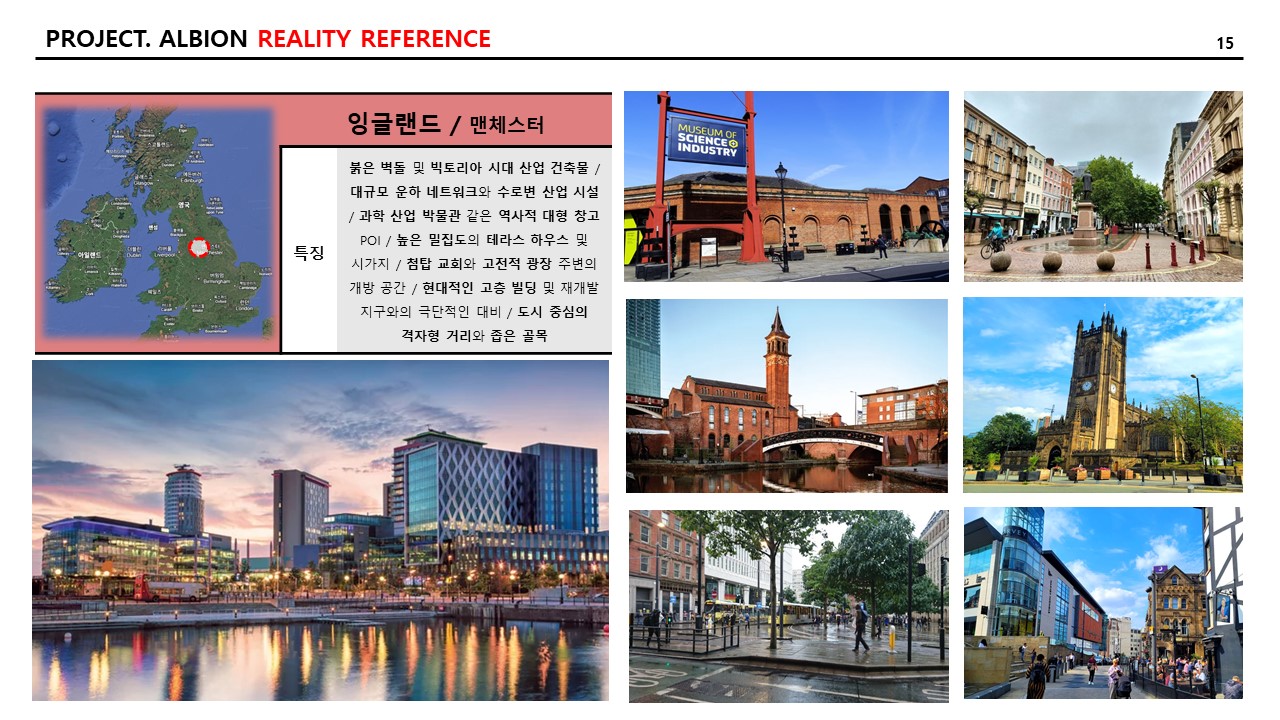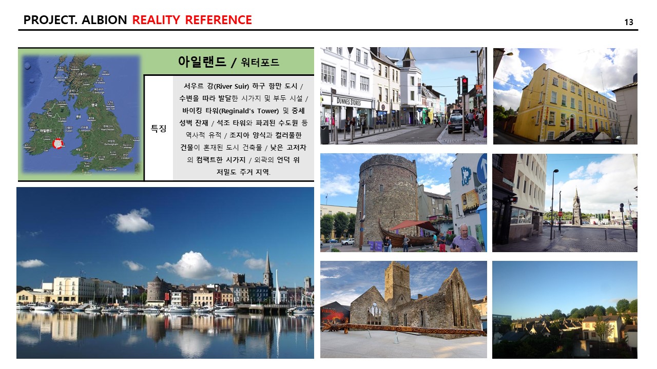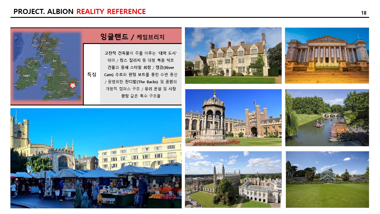 그리고 현실적인 참조 이미지와 특징 역시 추리다 보니, 21개의 도시가 나왔다. 일대일로 “알비온” 내의 랜드마크에 적용하고자 하는 의도는 없고, 지리적으로 다양한 곳의 도시를 선택하거나 문화적으로 발달한 도시를 선택하여 자료 조사를 다음과 같이 기록한다. 특징은 AI를 통하여 다듬은 자료를 옮겨 적었다.